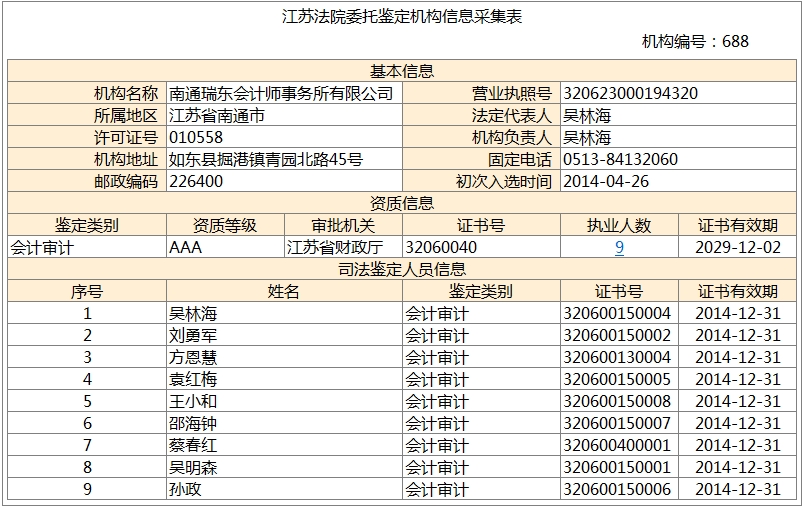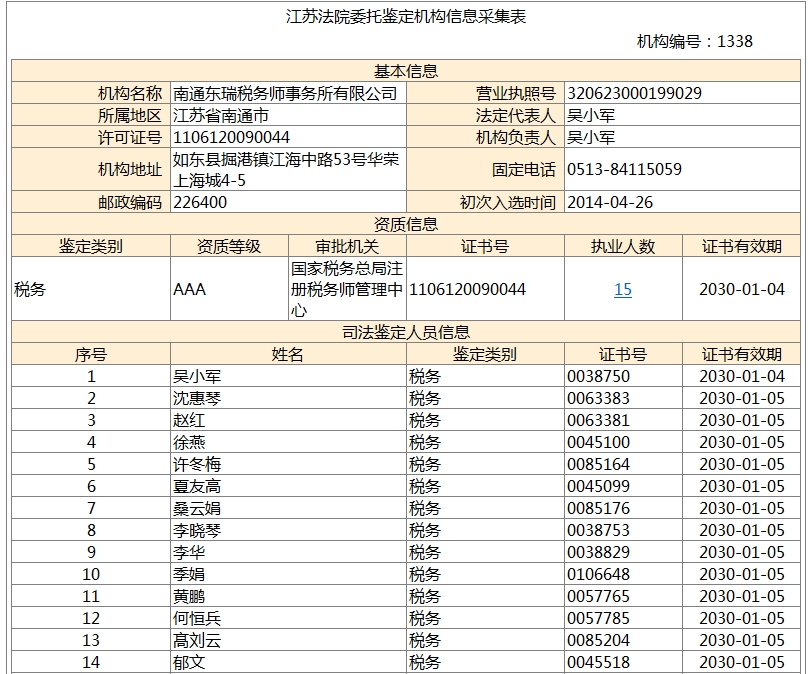 南通瑞東會(huì)計(jì)師事務(wù)所、南通東瑞稅務(wù)師事務(wù)所均進(jìn)入《國家司法鑒定人和司法鑒定機(jī)構(gòu)名冊(cè)》